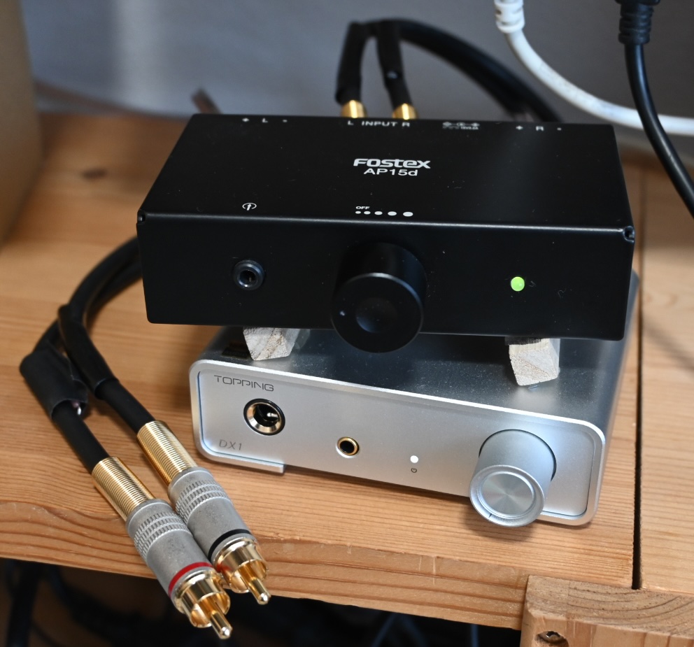 DX1とAP15dの組み合わせではボリュームを最小から少し動かすだけで充分な音量となってしまいます。DX1からの出力、AP15dの増幅、スピーカーユニットの能率の組み合わせによりボリュームつまみを9時まで回すと音が大き過ぎちゃう。アパートなので大きな音出せないし。